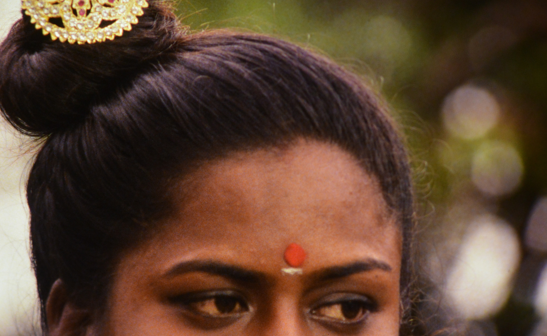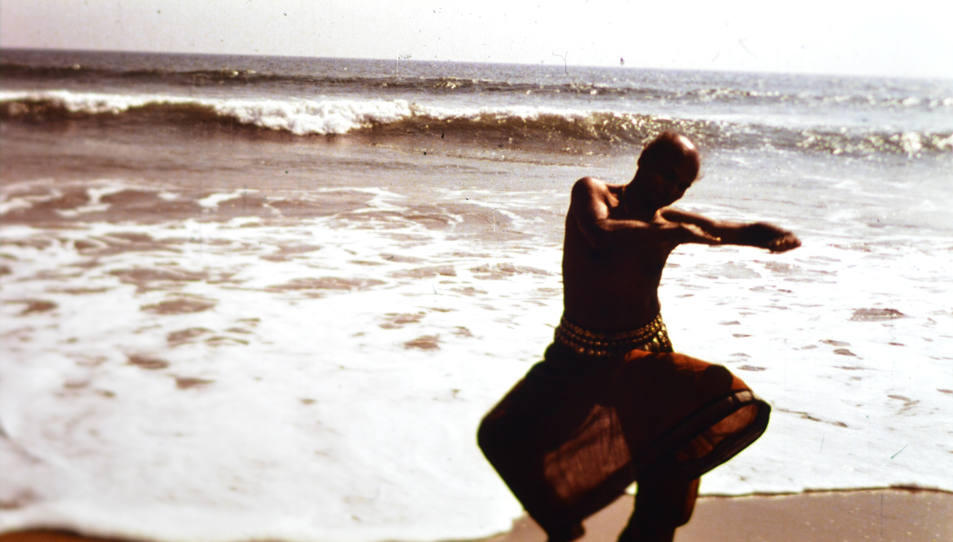 The opening of Bhavantarana exemplifies a textured, if not textural, richness through a close-up sequence of Odissi dance maestro Guru Kelucharan Mohapatra’s body undulating amidst stone. The sheen of his skin coupled with the reddish, rutted topography, creates an abstraction of glinting surfaces whose radiance catches, and pleases, the eye. The camera then pans away to a wide shot to reveal the larger sun dappled landscape lush with trees and a throng of birds. After a couple of minutes, the camera pans back to Mohapatra, now framed in a long shot, as he continues to move. The warm colors and light evoke a visual and gestural vibrancy that brings to mind Shahani’s own meditations on the sensorial effects of film: “Like music, the cinema is experienced as a continuous, live process of energies. It is conceived and best remembered in a flash, a composite whole.” The haptic close-ups of contracting muscles induce an embodied awareness of celluloid’s energy as well as the dancer’s physique.
