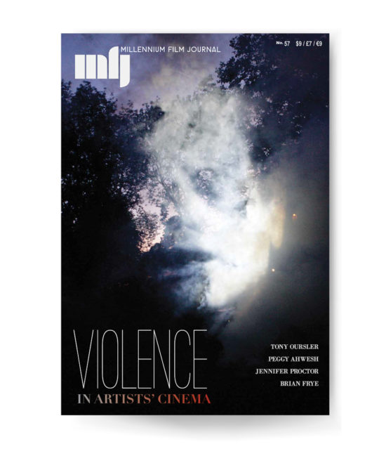 MFJ 74 is a substantial, broad-ranging issue, enhanced by the contributions of our distinguished new editors Jonathan Ellis, Nicholas Gamso, Nicky Hamlyn and Kim Knowles. Deniz Johns analyses the work of the UK-based research collective Forensic Architecture; Toby Lee, Laliv Melamed, Pooja Rangan, Paige Sarlin, and Benjamín Schultz-Figueroa propose to define documentary filmmaking not simply as evidentiary but as operational in a roundtable feature, Documentary (adj.); David Fresko reviews Annette Michelson’s collected writings on Soviet Cinema; Madison Brookshire’s article on Anal Shah’s suggests that some contemporary nonfiction films stimulate receptive responses by eliding subject matter altogether; Vera Dika writes on Dore O.’s experimental films; Clint Enns interviews Klarissa Hahn about her filmmaking practices. Other artists’ work include Artist Pages by Vincent Grenier, and MFJ editor Rachel Stevens’ Studio Visit with Jen Liu.