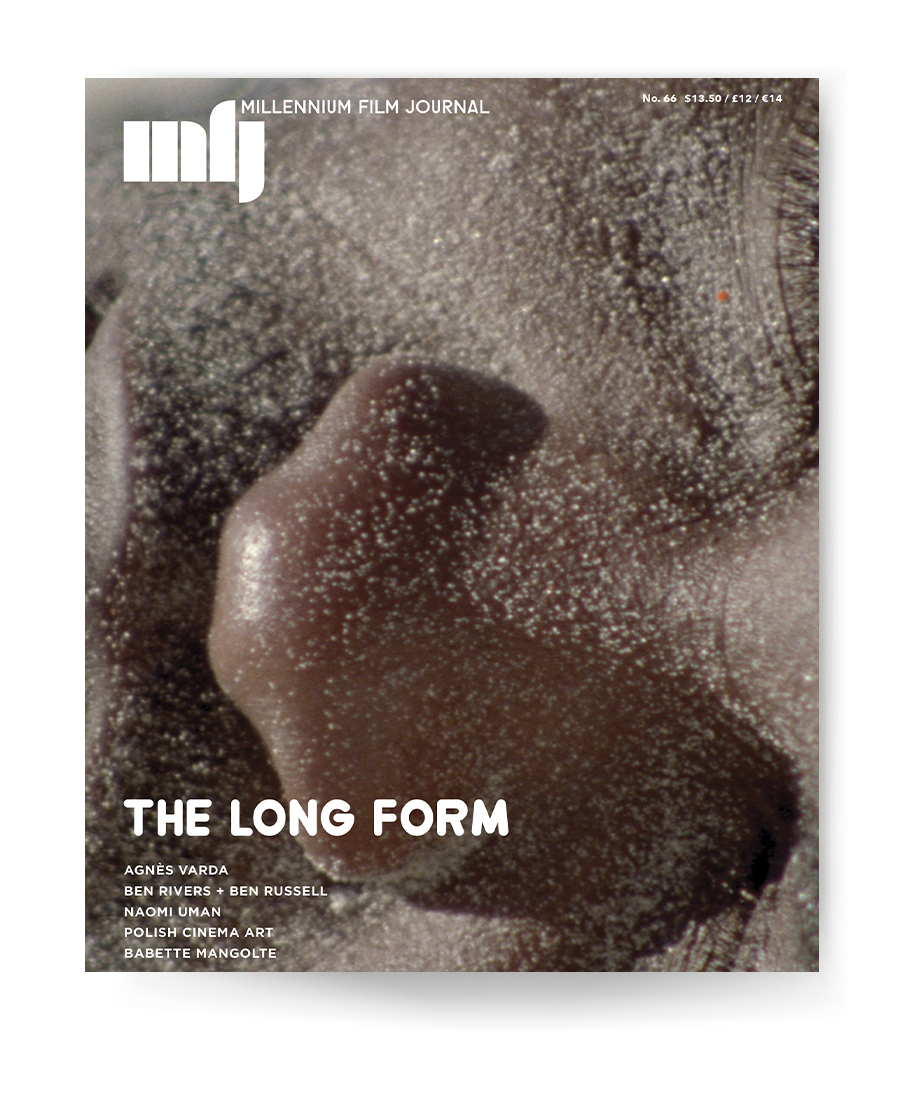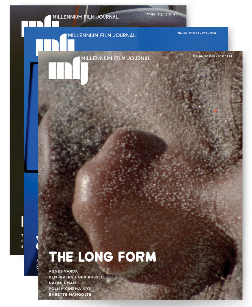 As MFJ reflects on its history, we also proceed into the future, in our continuing inquiry into artists’ cinema—the “image machine,” with and through personal vision. Questions of medium specificity have been supplanted by a kind of technical eclecticism. This new range of modalities, these “image machines,” require equally eclectic and agile work of critique. We offer a selection of texts in a range of formulations.